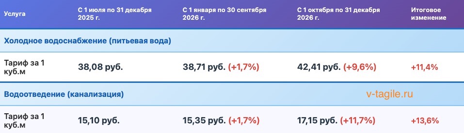 вчераВ 2026 году стоимость услуг водоснабжения и водоотведения для жителей Нижнего Тагила увеличится в два этапа. Первая индексация уже произошла 1 января в связи с повышением НДС. Основное же подорожание ждет тагильчан с 1 октября — тарифы подрастут ещё на 10-12%.